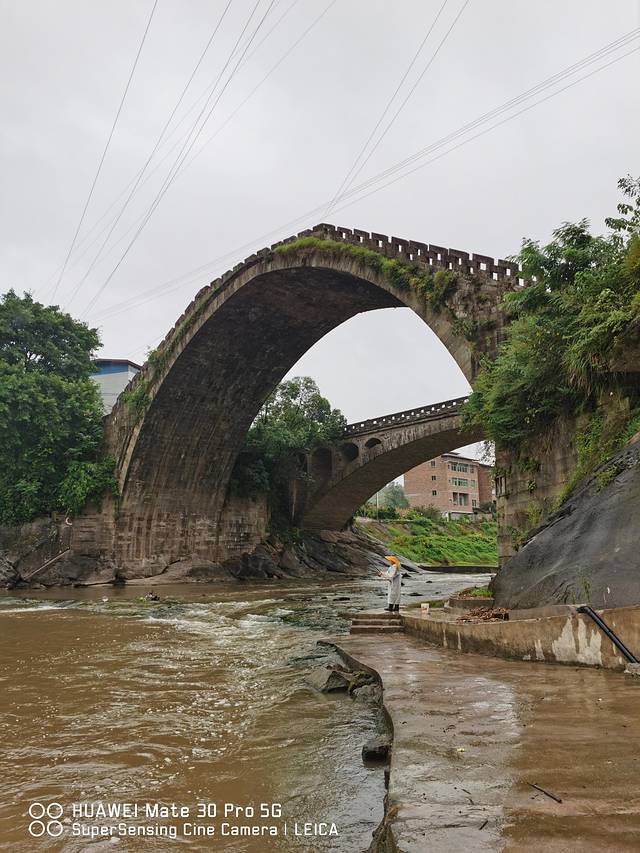 出发的这天下着雨。从家里到达州市区,去年走过这条路,看到了一座很古朴且高耸的拱桥在一个小镇连接着河两岸,当时由于有心事没有停车驻足去细看,但记忆深刻,很特别的桥。回头我在网上查了,那确实是一座有着将近200年历史的拱桥,我想着有时间一定要专门去看看,拍个照。这次正好路过了这个桥,于是停车下去细看。
