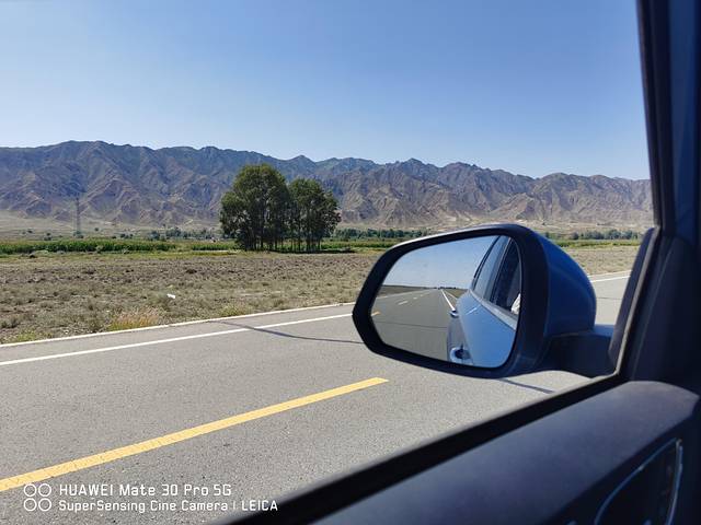 从鄯善县到哈密这一段路,依然是罗布泊的边缘,横风特别大,在高速行驶中,车被吹得是晃动的,如果速度超过120公里每小时,直接能感觉到车被吹得在横向移位,不得不降低速度,但是依然需要一直把方向盘往逆风方向微打并始终保持控制才能保持车不被吹偏向另一车道。
