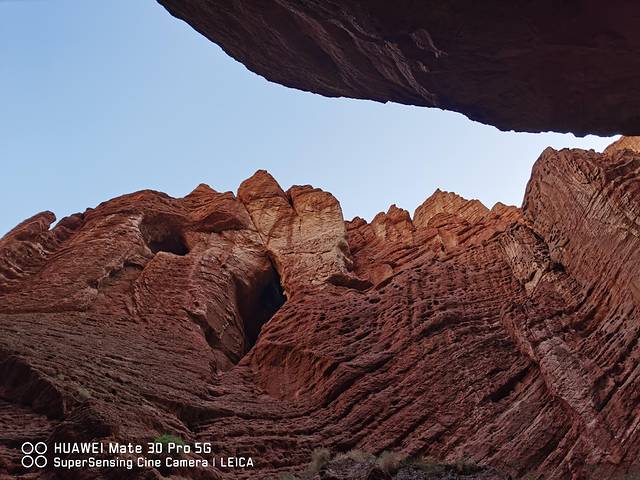 25号傍晚我到了天山大峡谷附近后就停下来在沿途的一个营地露营,这个营地在天山神秘大峡谷正门的北侧,是一个停车休息区,四周都是丹霞红林景观,当然,由于就在主路旁,这里靠近煤矿,拉煤的大货车经过比较多,会比较吵,晚上就我一个人在此露营。天山神秘大峡谷的停车场也可以露营,露营的条件会比这里好一些,商店和饭店等都很齐全,那里露营的人会比较多。