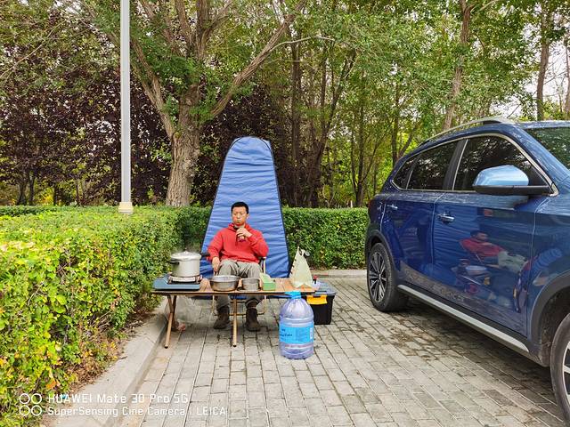 我是在兰州七里河区的万达茂广场的地上停车场露营,这也是很多自驾游客的露营地,停车费一天封顶20元,有“五星级”的卫生间和自来水。也有当地人给我推荐免费的露营地,但是距离市区较远。