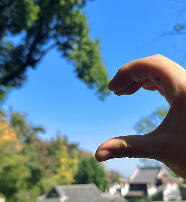 从南门进入岳麓山后往右边步行去看爱晚亭,路上会经过现在很火的比心拍照的地方,看到很多人站在这里比心就知道了,哈哈。