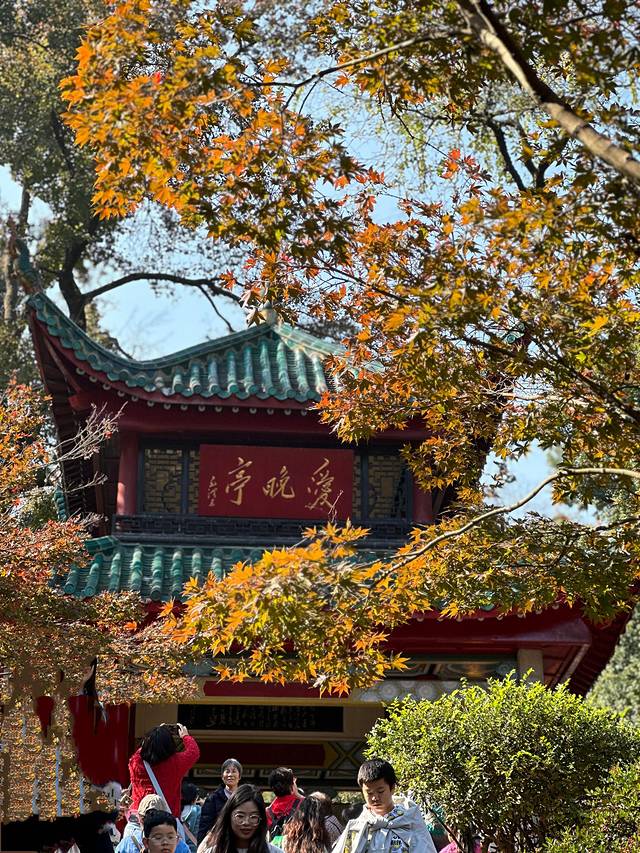 爱晚亭拍了照片,坐在这里休息一下,太舒服了。休息好了之后,往回走去坐观光车(20元/人)可直达上顶,很多人喜欢徒步的就要早一些。