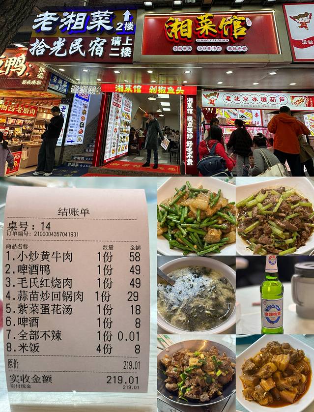 到了长沙在酒店整理好之后步行来到这里,何炅推荐的,导航一路看到都是小巷子,很有当地的烟火气,星期五也很多人,我们去的早没有等位。醋溜蛋是招牌,不能免辣,口感很特别,蛋黄是流心的,个人不爱吃。小炒脆骨和牛肉很好吃。