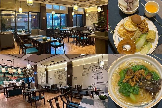酒店早餐很简单,品种不多,但口味不错。米粉好吃,配料里的牛肉和木耳也好吃。