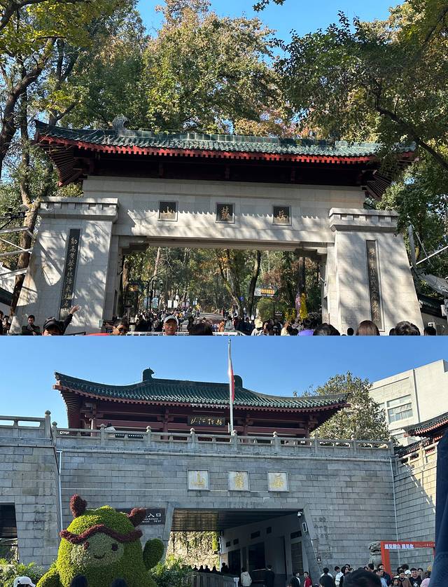 逛完橘子洲地铁到岳麓山去,(建议从南门进出,比从东门方便一些)到达岳麓山南门地铁出来必须会经过湖南大学,湖南大学旁边很好小吃和湘菜馆。正好可以在这里吃午餐休息一下。