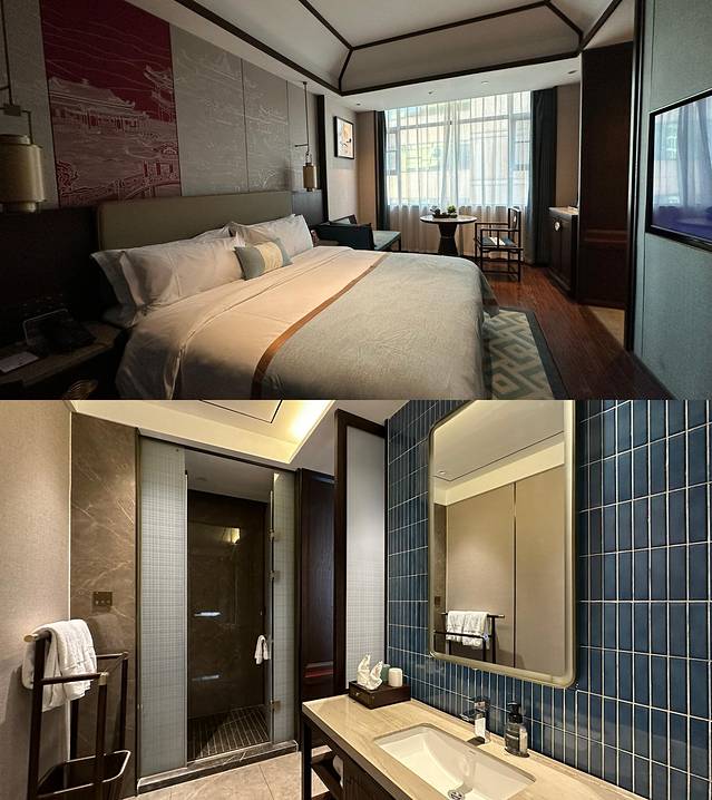 酒店外观普通的不能再普通,没想到房间这么好,还有小度可以控制房间的开关窗帘,很方便,可以听音乐,哈哈。卫生间也很大,酒店前台服务很好,还有免费的汉服租。