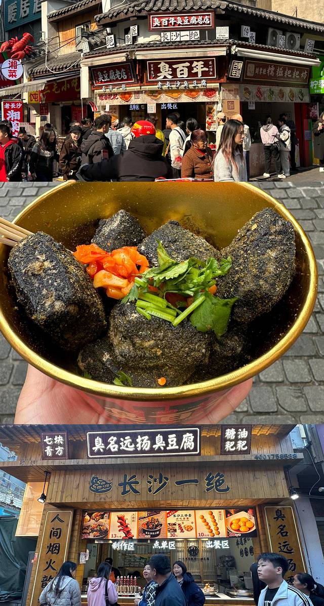 每次来长沙必须到这家吃臭豆腐,(潇湘文化店,坡子街上),个人觉得这一家最正宗,感觉没有不排队的时候,哈哈。豆腐很脆,加上酱汁更好吃。
