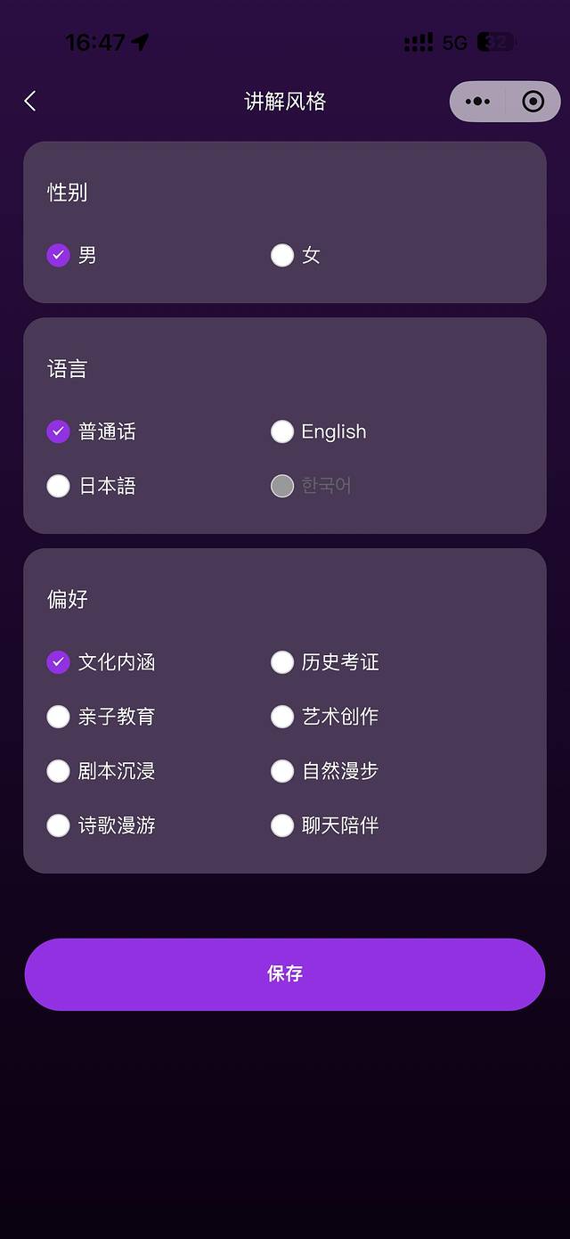 AI智慧导游还提供了多语种讲解和丰富的互动选择,从严谨的“历史考证模式”到生动的“剧本沉浸模式”,游客可以根据自己的兴趣选择不同的体验方式。