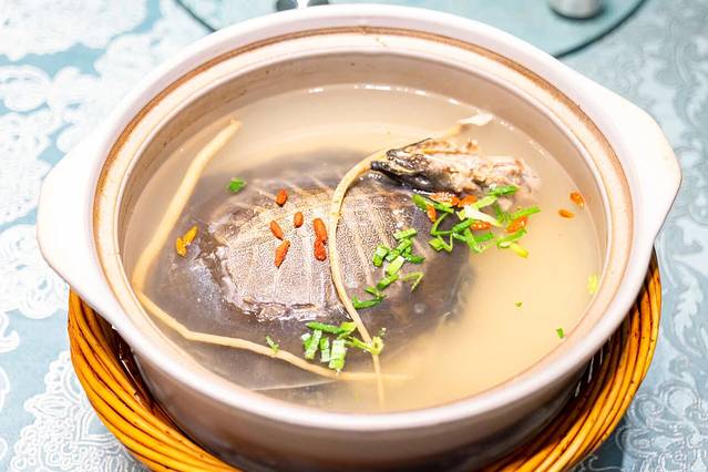 文火慢炖的野生甲鱼汤,汤色奶白浓郁