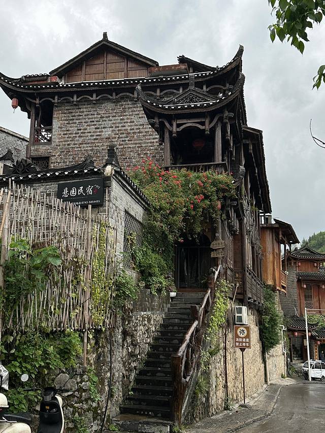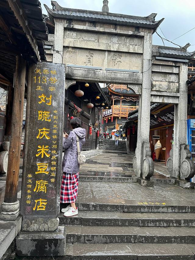 直接到达“悬园民宿”,主人是一对的年轻夫妇,热情周到。向我们介绍景点游览路线,我们也是迫不及待。好在这家民宿紧邻游客中心,我们很快到达景区入口;大门并不宏大,向游人展示着古朴、浪漫、和自然。步入景区,我们很快发现了当年《芙蓉镇》那一张刻骨铭心的海报,在米豆腐店和石板街,游客仍在寻找那一对患难者的脚印,也带红了“第一螺”等美食店。我们也在此小息,热汤米豆腐、艾草糍粑、香椿炒蛋,让第一螺更加悠长回味。