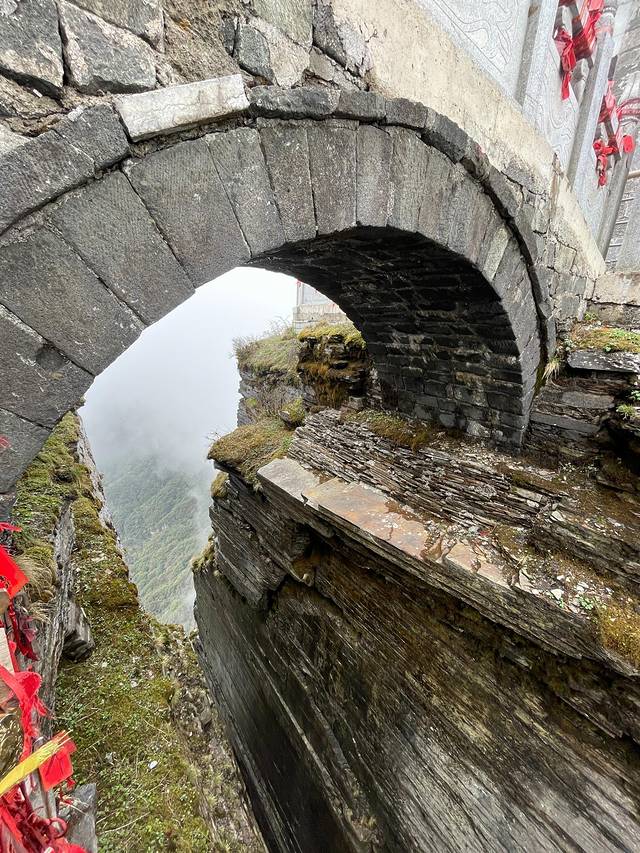 攀登老金顶耗时2小时。临近山顶的一段路,只见山石间仅可容纳一人侧身经过,脚下的石阶又陡又高,举步维艰;头顶的石层间水滴如雨,吓退了一队游人,这也确实让我们坚定了一番,才终于登顶。
