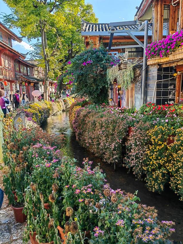 丽江古城里满是“ 繁花配古建”的惊喜,作为世界文化遗产,细节处全是精致感。虽然主街有叫卖声,但观礼巷、文献巷没那么多嘈杂,偶尔有小猫溜过石板路,古意又安静;木府周边更是被花围着,走过附近的店像闯进小花园。