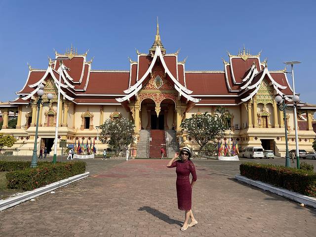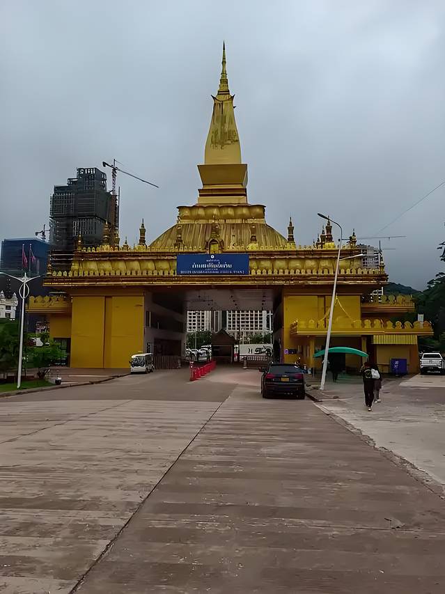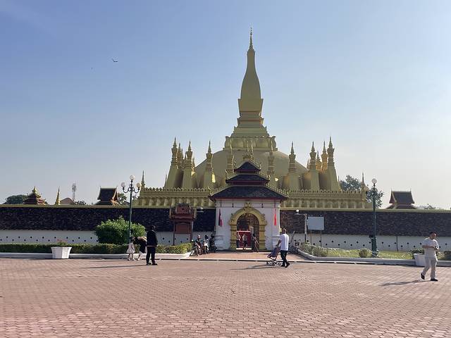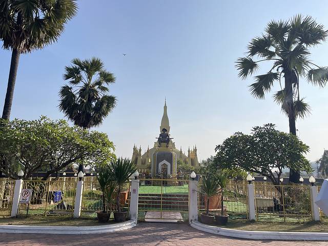 塔銮寺门口的塑像是老挝历史上澜沧王国的国王塞塔提腊王(1534~1572年)。他是老挝最伟大的君主之一,以抵御外敌入侵和统一国家而闻名。塑像通常被描述为坐像,手持长刀,面朝南方,背对塔銮寺,象征其守护之意。