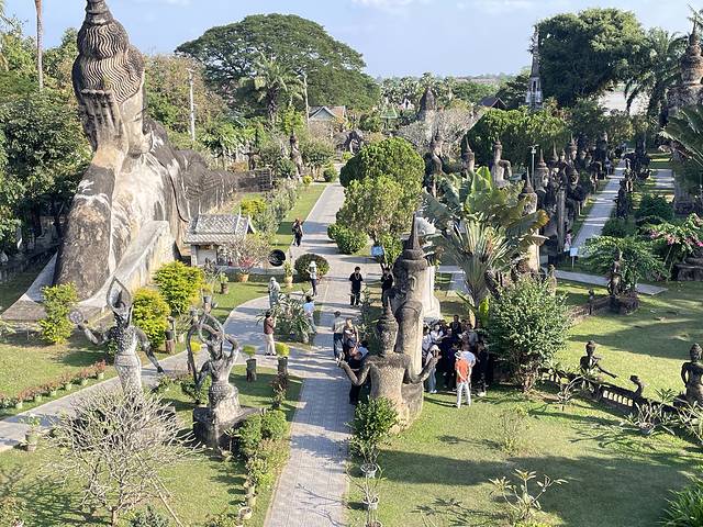 核心特色:这里并非传统寺庙,而是一个露天雕塑园,园内分布着200多尊形态各异的佛像和神像,包括佛教与印度教的神灵形象,如卧佛、湿婆、毗湿奴等,整体风格新奇怪诞,被誉为“混凝土创造的奇迹”。