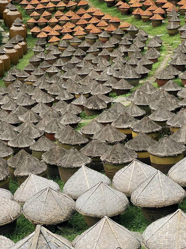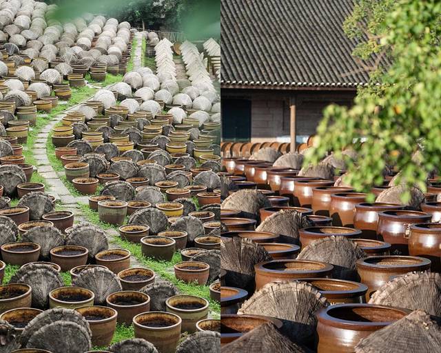 缸口蒙着竹编斗笠,静默列阵,整个场面沉静而恢弘。无论从哪个角度看,你都会感慨传统工艺的智慧。这抹化不开的酱香,也成了无数人对泸州独特的“液体记忆”。