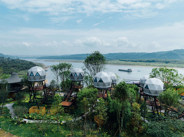 晚上再入住「树蛙部落」,比起一般民宿,这里的三角树屋、鸟巢树屋更有回归自然的野趣。