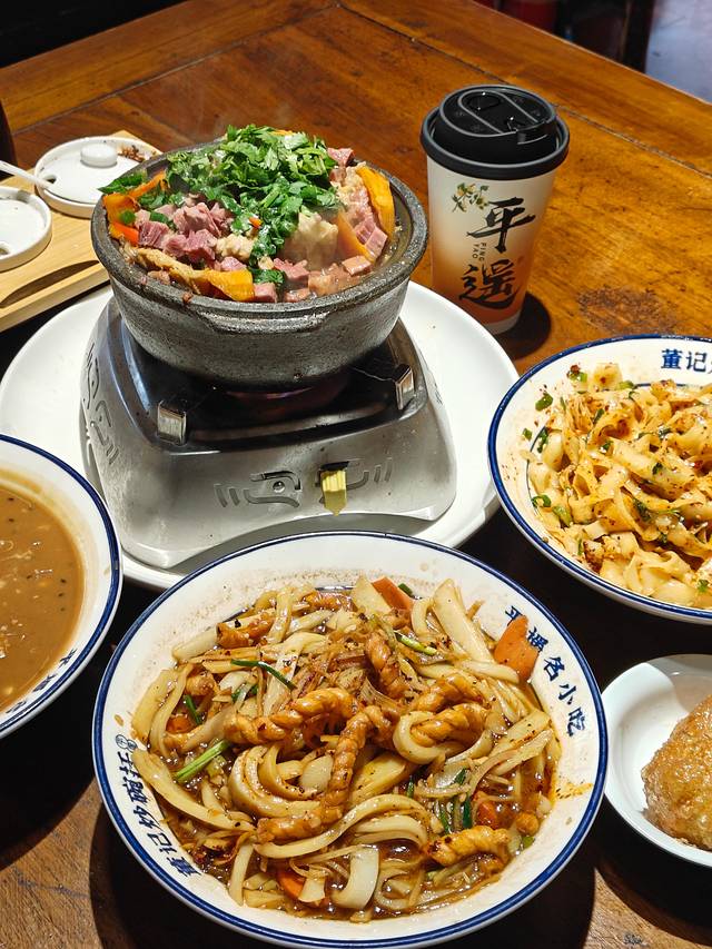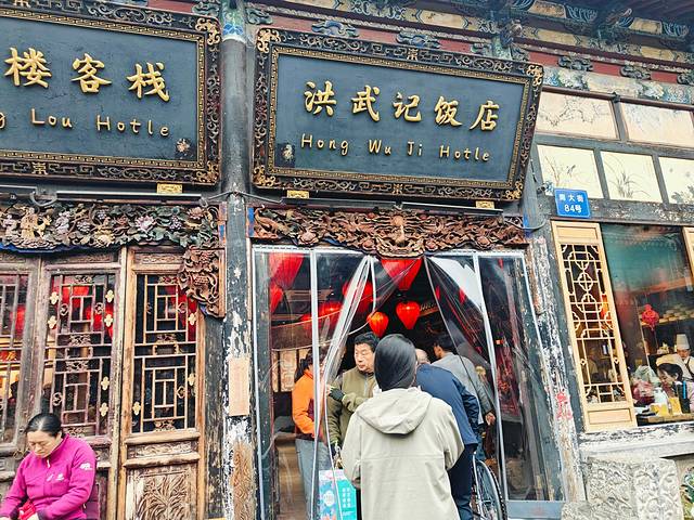 洪武记饭店简直就是在 平遥 最不能错过的一家网红餐厅。卫生很干净,很舒适温馨,装修的也非常有特色。大红色的灯笼高高挂,真的是相当的应景,店铺很大,是上下两层楼的,但是一到饭点人就爆满,而且还需要排好长时间的队!