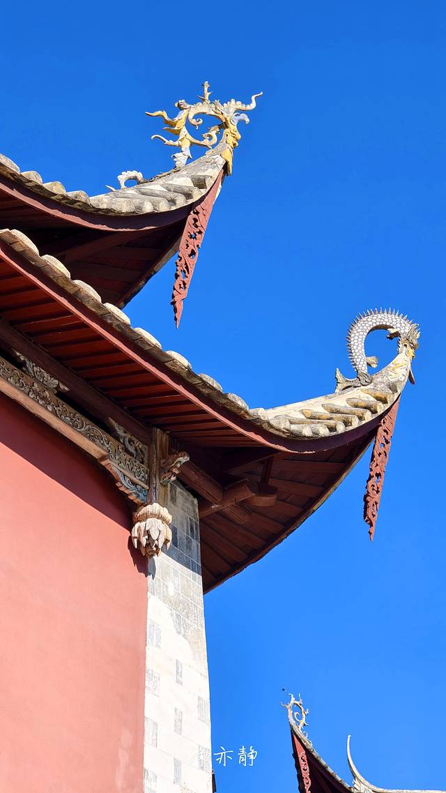 据说,这背后还有一段传说。与古田方言中,“斜”与“蛇”紧密相关。临水夫人曾斩杀白蛇以解救万民之苦,为了镇压白蛇以免其再祸害人间,她最终在蛇首之上坐化升天。古田人民为了纪念她的这一功德,修建庙宇时特意将仪门置于侧面,并设计斜向台阶,以此隐喻表达对临水夫人的深深敬意。