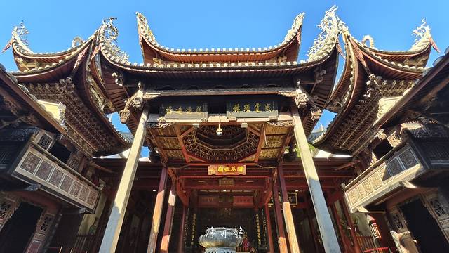 正门两侧的石刻楹联:“庙貌壮千秋鼎新有象,母仪昭百代坤厚无疆”,也概括了百姓对陈靖姑的无尽景仰。