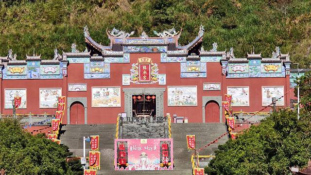 如今位于广场一侧的红墙黛瓦的临水宫祖庙,是在清光绪二年(1876年)依山重建的,保留了其传统建筑样貌,是分布在全球各地4000余座分庙的祖庙。