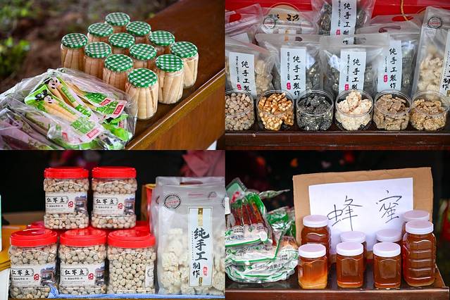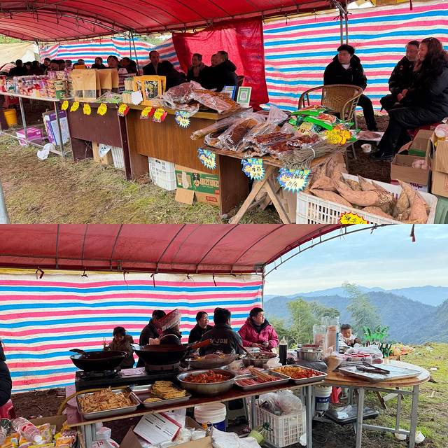 各色山野干货散发着质朴的香气,鲜嫩的脆笋还沾着山林晨露的湿气,手工糖、油炸小吃、奶茶果汁……味道好,价格还特别实惠!边逛边尝,一圈下来,手里早已是大包小包了~