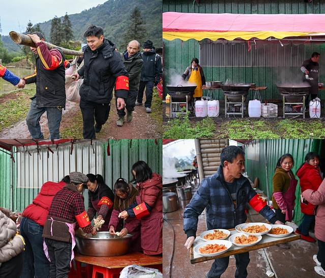 几口大锅被烧得热气腾腾,村民们将年猪合力抬上案板,进行一套完整的传统流程。大家说说笑笑,用最直接的方式,把一整年的辛劳、丰收的喜悦,化为一院子的喧腾。