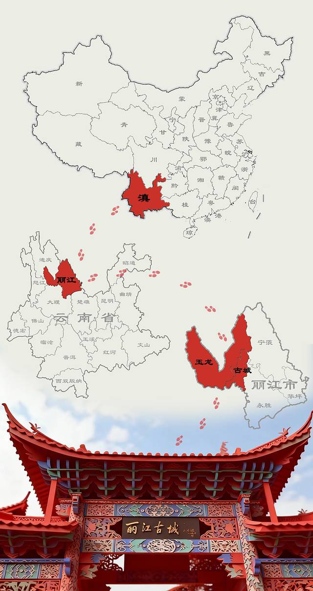 丽江,位于滇西北,因古“丽水”(属金沙江)而得名,作为行政区划名称最早出现在大约750年前的元代,意为“丽水之江”,源于这一带的金沙江水质清澈秀丽。