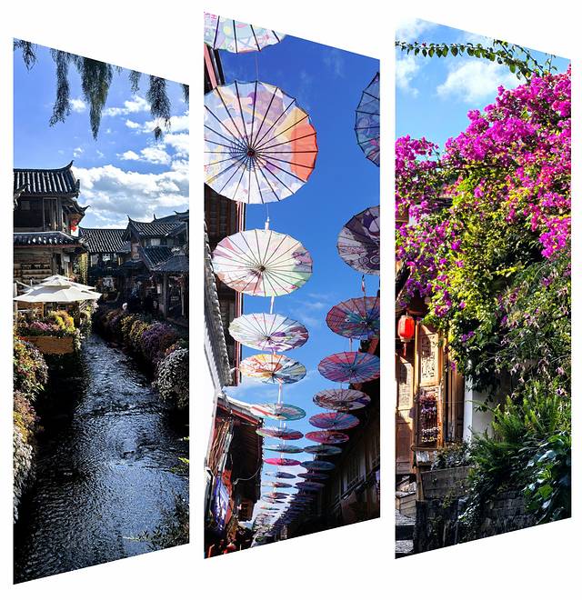 主要景点包括木府、四方街、大石桥、狮子山、纸伞巷等。