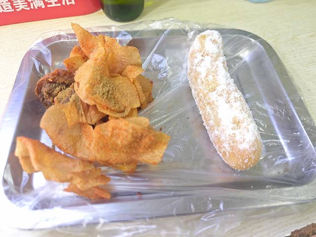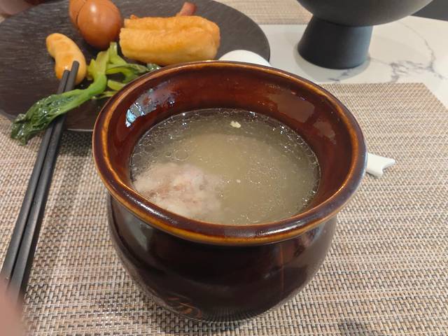 每人点了一个皮蛋肉饼汤,点了一份拌粉。皮蛋肉饼汤,看似朴素,入口鲜甜,皮蛋独特的香气和肉饼鲜味完美融合,作为皮蛋深度爱好者这个太美味了;拌粉只有3.5元,里面的配料丰富,口感爽滑,也很不错。