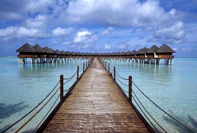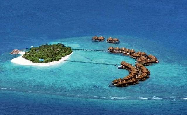 2、号称是马代最浪漫的岛,蜜月首选。房型以水上屋为主。豪华水上屋配私人泳池,浴室的透明窗外就是大海,但能够保持私密性。